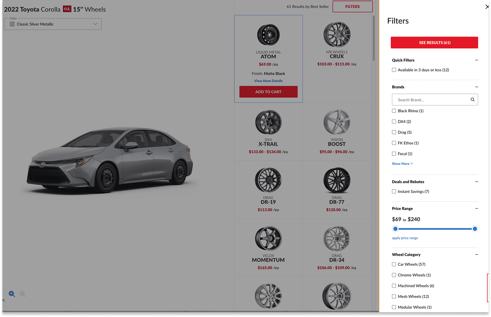 Users can't compare multiple wheels on their vehicle on the product list page.